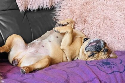 Så jag ligger i sängen. Klappar min Tyra. Andas in bulldogg-lukt (ni som vet, ni vet). Och tänker att kärlek ibland kommer med fyra ben, rynkigt ansikte och totalt noll respekt för personligt utrymme. Och det är faktiskt helt perfekt!